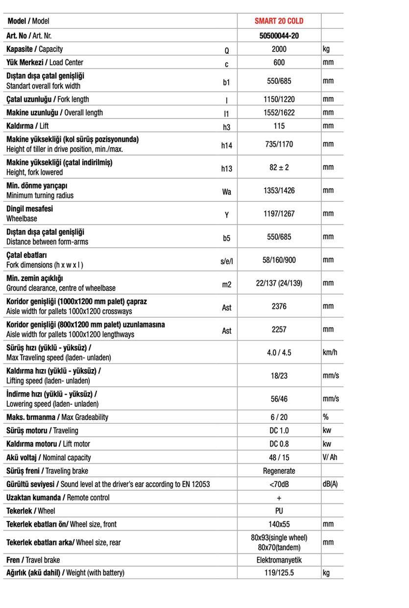 • Jacx Smart 20 Akülü Transpalet -Soğuk Oda (Lityum İyon Akülü 48V 15 Ah)